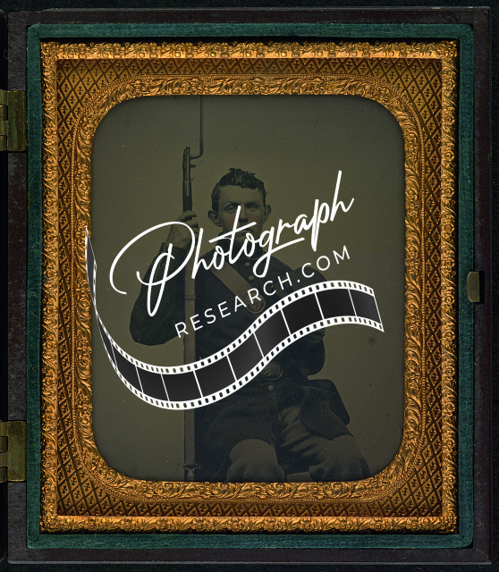 [[Unidentified soldier in Union uniform and hat with flag insignia holding bayone