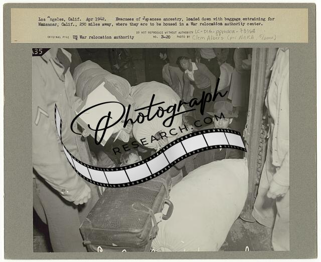 Los Angeles, Calif. Apr. 1942. Evacuees of Japanese ancestry entraining for Manz