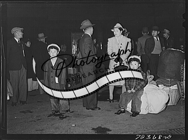 Title: Los Angeles, California. The evacuation of Japanese-Americans from West coast areas under United States Army war emergency order. Japanese waiting for train