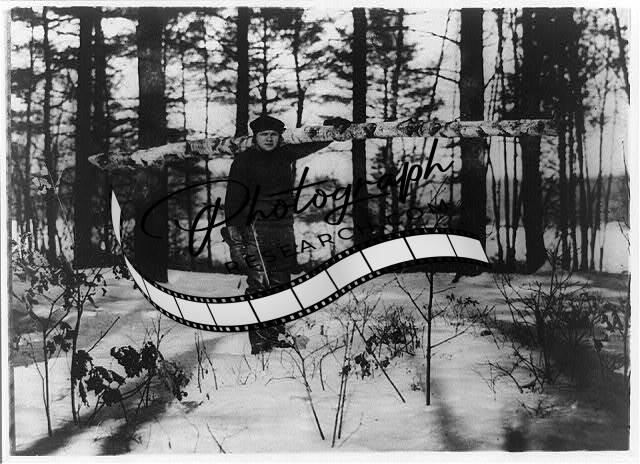 Babe Ruth carrying 300 pound log for stove,Snow,Winter,1920s,Wooded Area