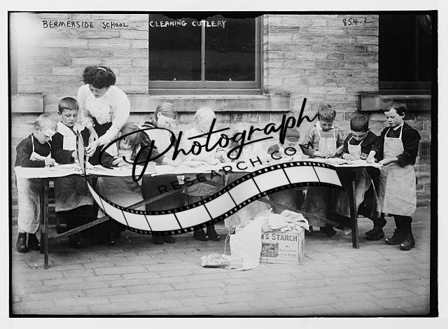 Children cleaning cutlery,Bermerside School,starch,woman