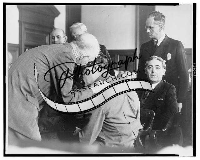 Summary: Photograph shows Louis Capone being questioned by Detective John Osnato regarding the 'cut-rate murder syndicate' operating in Brooklyn, New York.