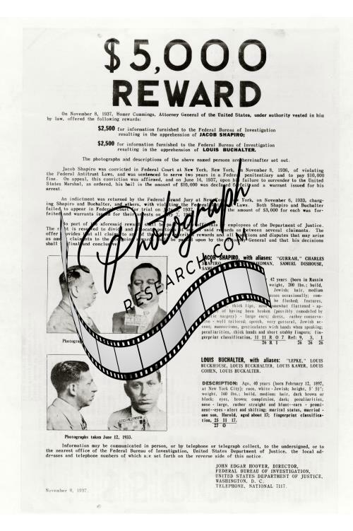 Wanted poster,Jacob Shapiro,Louis Buchalter,1937,reward
