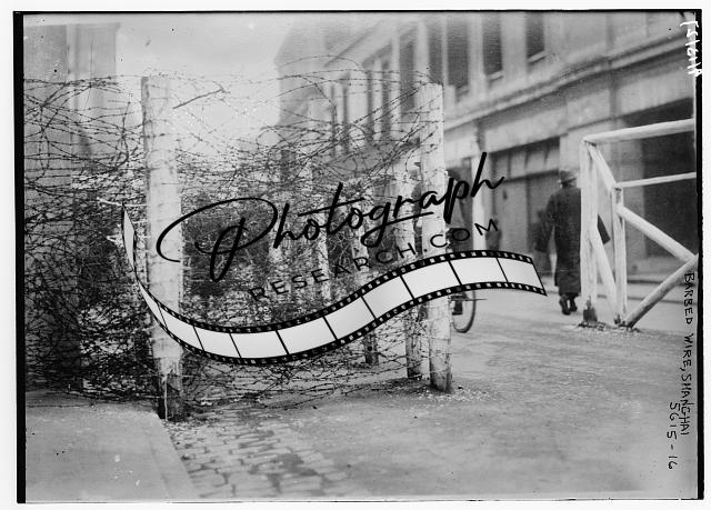 Barbed wire,poles,fences,streets,roads,bicycles,Shanghai,China,Bain News Service
