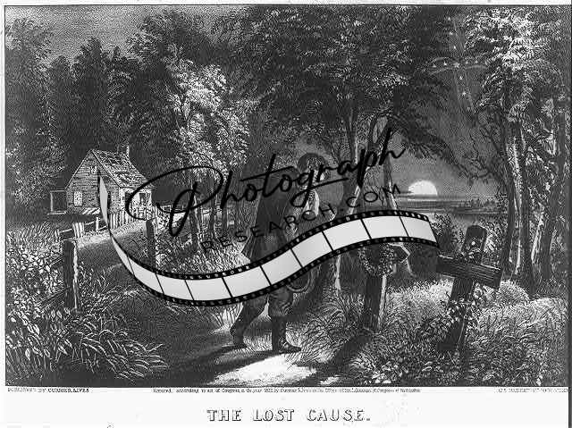 The lost cause 1,c1872,Currier & Ives,grave stones,man,house
