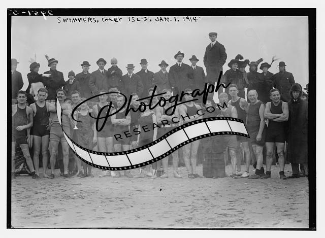 Swimmers,Coney Island,New York,January 1,1914,bathing suits,beach