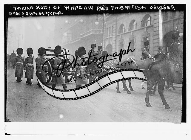 Taking body of Whitelaw Reid to British cruiser,December 1912,cassion,funeral