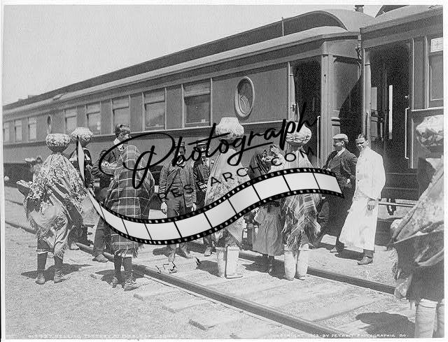 Selling pottery at Pueblo of Laguna,N.M.,Indian women at Railroad train,c1902