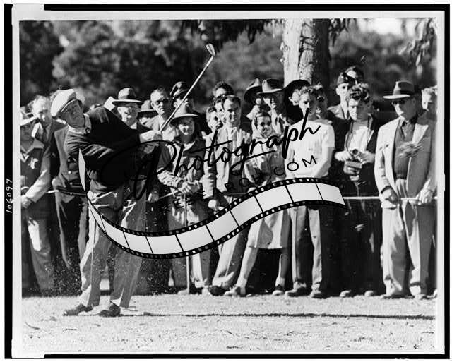 Byron Nelson uses iron,Lord,eighth fairway,Los Angeles Open,Riviera Club,CA,1946