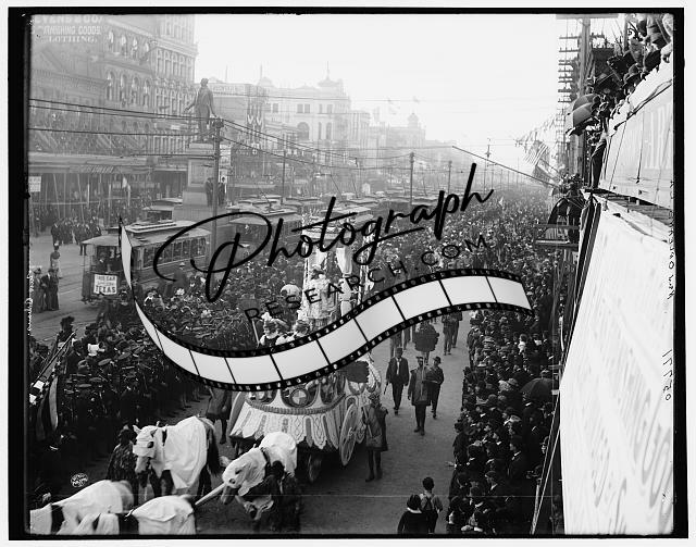 Mardi Gras procession,parades,crowds,Canal Street,New Orleans,Louisiana,LA,1900