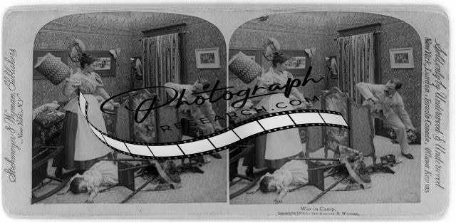 Photo of Stereograph,War in Camp,Man & Woman Fighting Violently,Couples,c1898