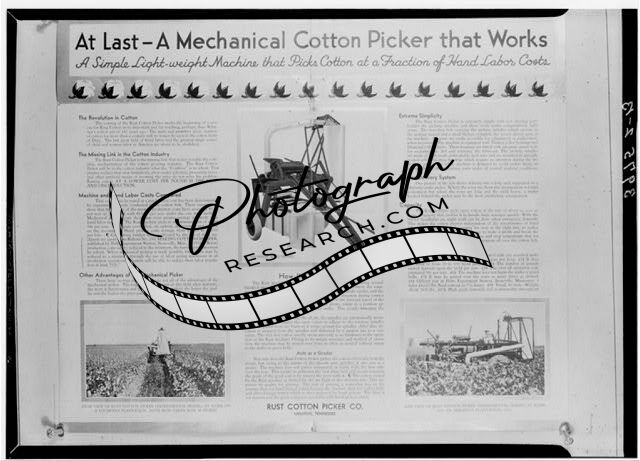 Mechanization of cotton,Mechanical Cotton Picker,Farm Security Administration