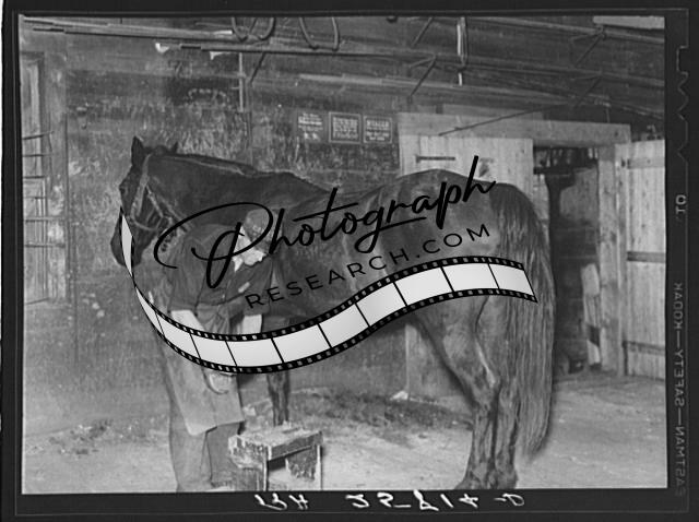Blacksmith shoeing horse,Lowell,Vermont,VT,Orleans County,Arthur Rothstein,FSA