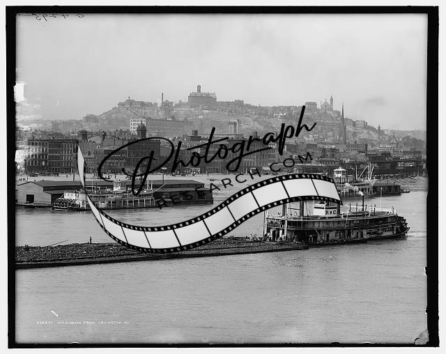 Mount Adams,Covington,tugboats,barges,boats,hills,Ohio River,Kentucky,KY,1890