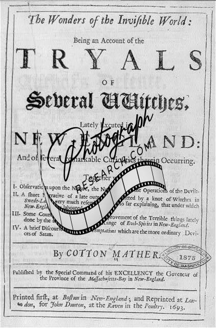 Tryals of Seberal Witches,Cotton Mather,1693,Title Page