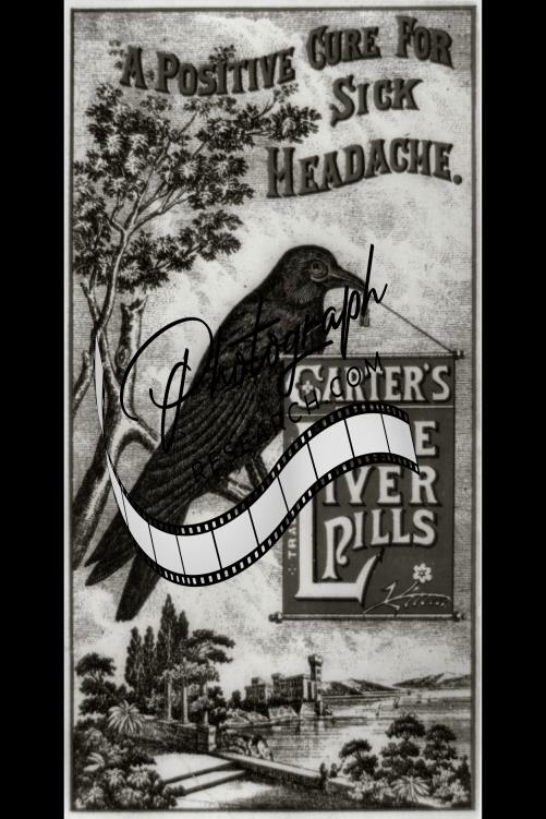 Photo,Trade Card,advertising Carter's Little Liver Pills,crow/raven,banner,sick