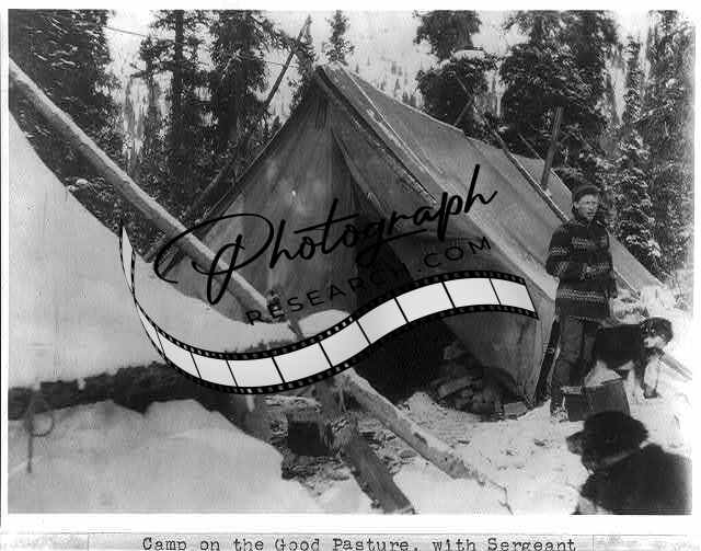 Camp Summit - Sargeant Loghry beside tent,1901-1903,dogs,William Billy Mitchell
