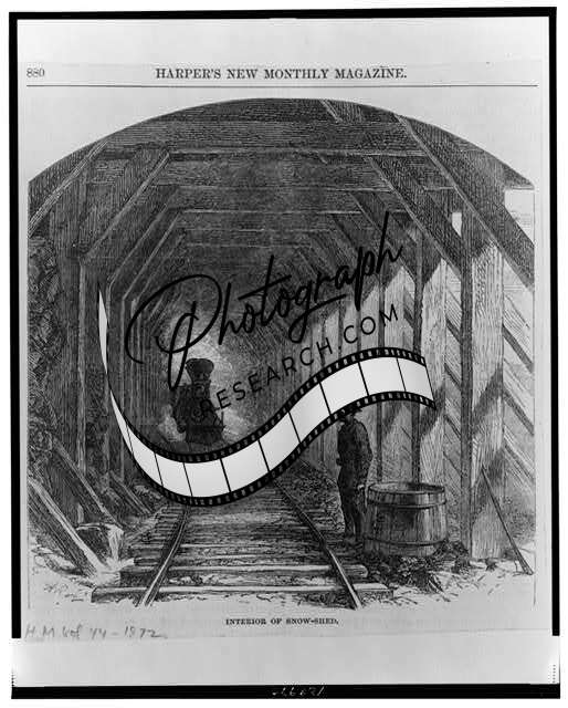 Interior of Snow Shed,1872,Locomotive Approaching,Transportation Facility