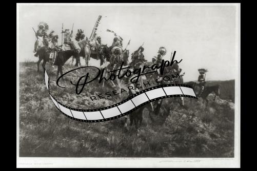 Oglala war party,Indians,war bonnets,horseback,Edward S Curtis,c1907,warriors