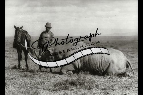 Theodore Roosevelt in Africa,dead rhino,horse,c1909