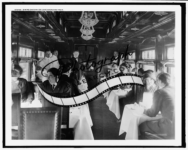 Dining car,deluxe overland limited train,passengers,railroads,interiors,1910