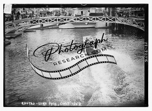Chutes - Luna Park,Coney Island,New York,people in boat,1910-1915,bridge,water 1