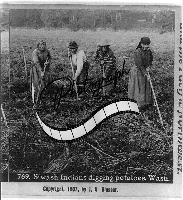 Siwash,Salishan Indians digging potatoes,Washington,WA,c1907,Harvesting