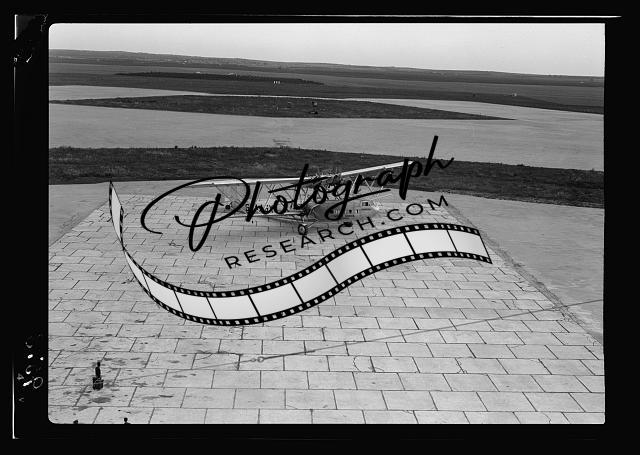 Title: Lydda Air Port. Haniball [i.e., Hanibal] taking off silhouetted against sky
