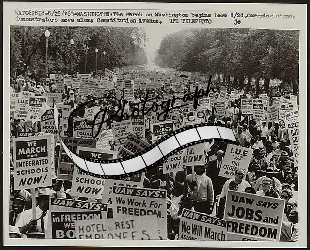 Washington - the march on Washington begins here 8/28 - carrying signs, demonstrators move along Constitution Avenue