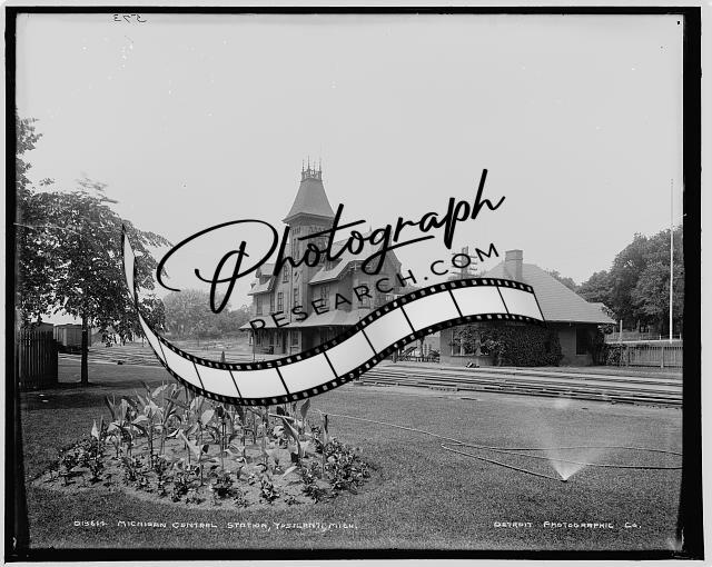 Michigan Central station,railroad,sprinkler,Ypsilanti,MI,Detroit Publishing,1901