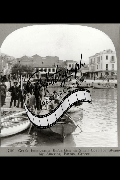 Greek Immigrants embarking in small boat for steamer,America,Patras,Greece,1910