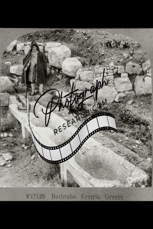Bathtubs,Eretria,Greece,Row of 4 interconnecting ancient bathtubs,February 1926