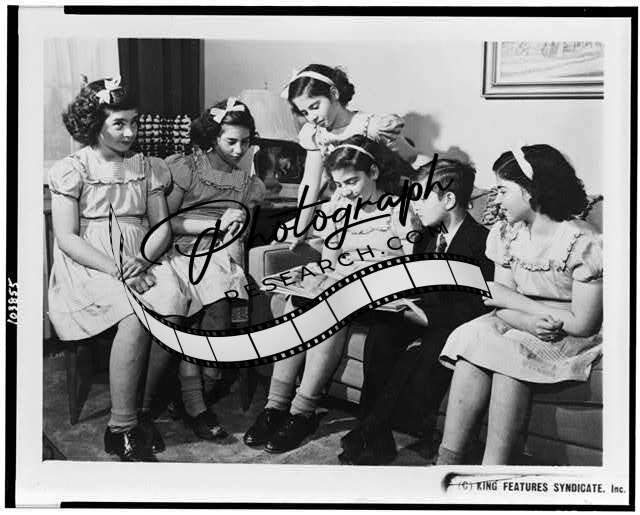Dionne Quints at home,quintuplets,children,reading,album,book,siblings,1945