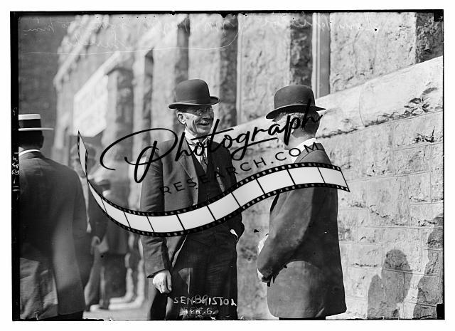 Senator Bristol,speaking with man,smiling,Bain News Service