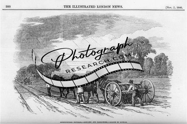 Agricultural pictures - drilling,harrowing,1846,horses,Illustrated London News