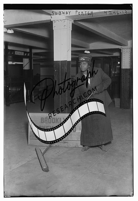 Subway porter,Brooklyn,Coney Island,African American woman,push broom,Bain News