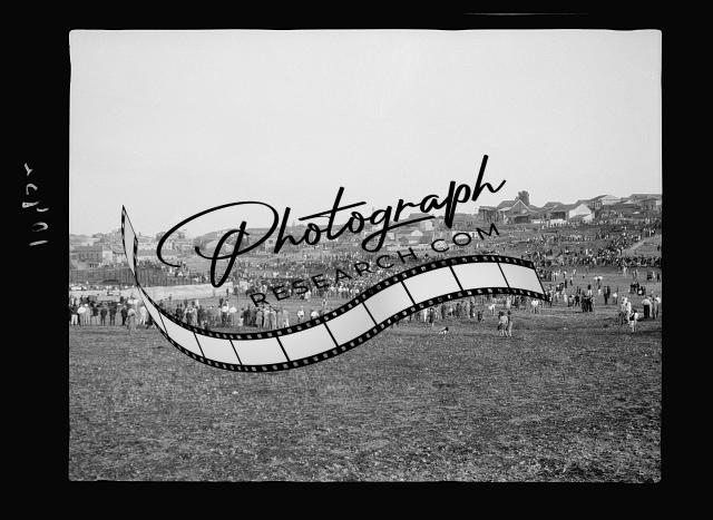 Title: Maccabee football game on sports grounds near el-Bokharbia, crowds on ground stands