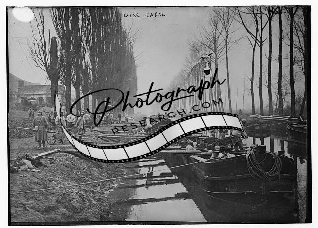 Oise Canal,Canal latéral à l'Oise,France,boats,men,Bain News Service
