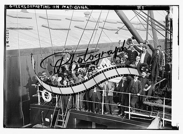 Greeks departing on MADONNA,people,flag,Ship,October 1912,Greek Immigrants