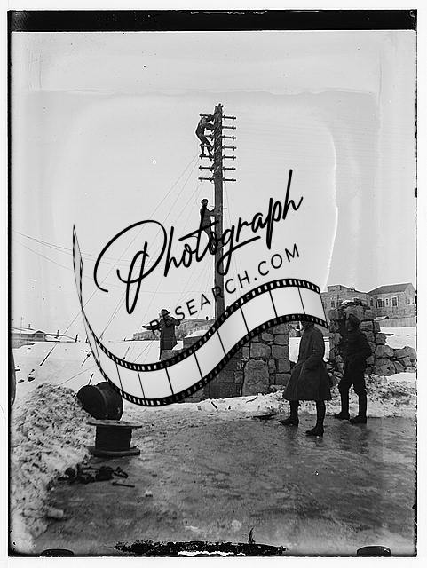Snow in Jerusalem,1921,British soldiers putting up electrical lines,Middle East