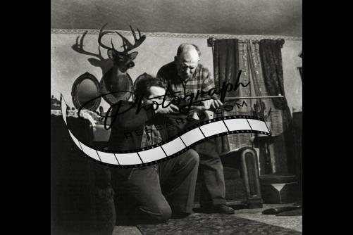Andrew Scavnicky,with son Paul,aiming rifle in living room,Hazelton,PA,1942