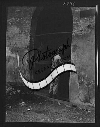 Man,horse,stall,buildings,arches,New Orleans,Louisiana,LA,Arnold Genthe,1920