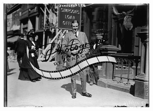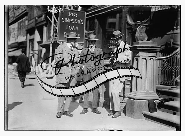 James Radley on street,New York,NY,Simpson's Loan Office,1910