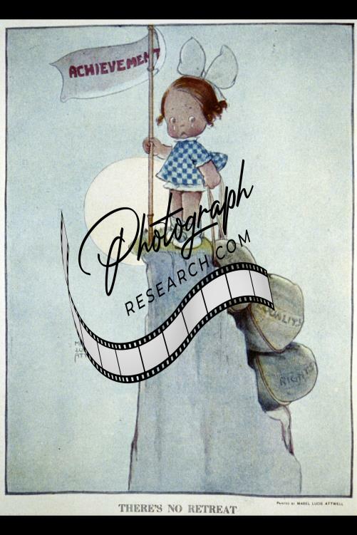 There's no retreat,1914,small girl,banner of Achievement,peak of mountain,votes