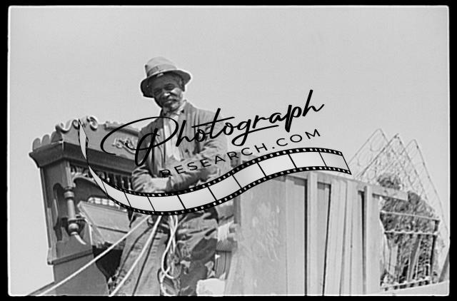 Title: Negro day laborer moving from one man's farm to another to get work. He wasn't needed any more by former 'employer.' The son of his new employer said his father used to have tenants but that they 'skinned' him too often by moving out on him all the time. So he just hires by the day now. Near Madison, Georgia