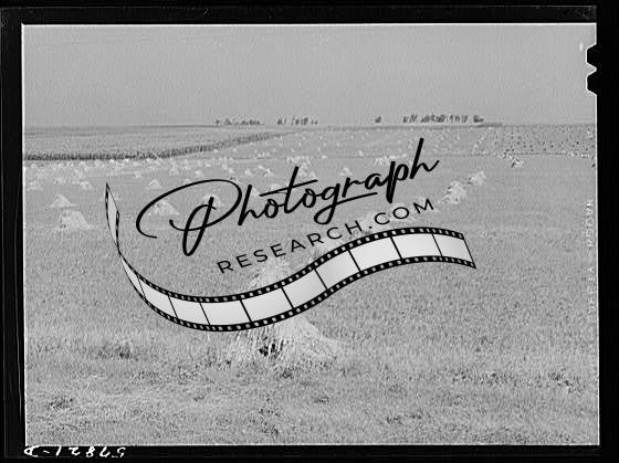 Title: Wagons hauling wheat which has been harvested with a binder, to the barnyard for threshing on a farm near Madison, Wisconsin