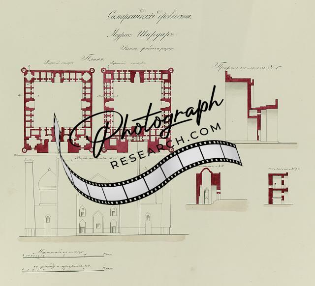 Title: Samarkandskiia drevnosti. Medresse [sic] Bibi Khanym. Sobornaia mechet' (mecheti dzhami). Nadpisi na lievom boku mramornago piupitra (lau)