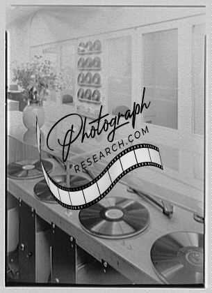 Title: Magnamusic Inc., business at 152 W. 57th St., New York City. Record shop, detail of set shelves