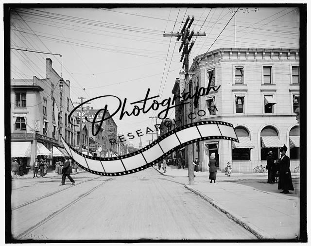 Church Street,commercial facilities,buildings,tracks,Burlington,Vermont,VT,1900
