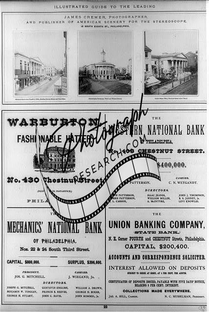Page,advertisements,original photoprints,public buildings,Philadelphia,PA,c1871